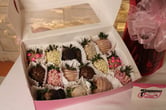 Uno de los productos PREMIUM, FRESAS cubiertas con chocolate, personalizadas, muchas temáticas, múltiples ocasiones, simplemente una delicia.
